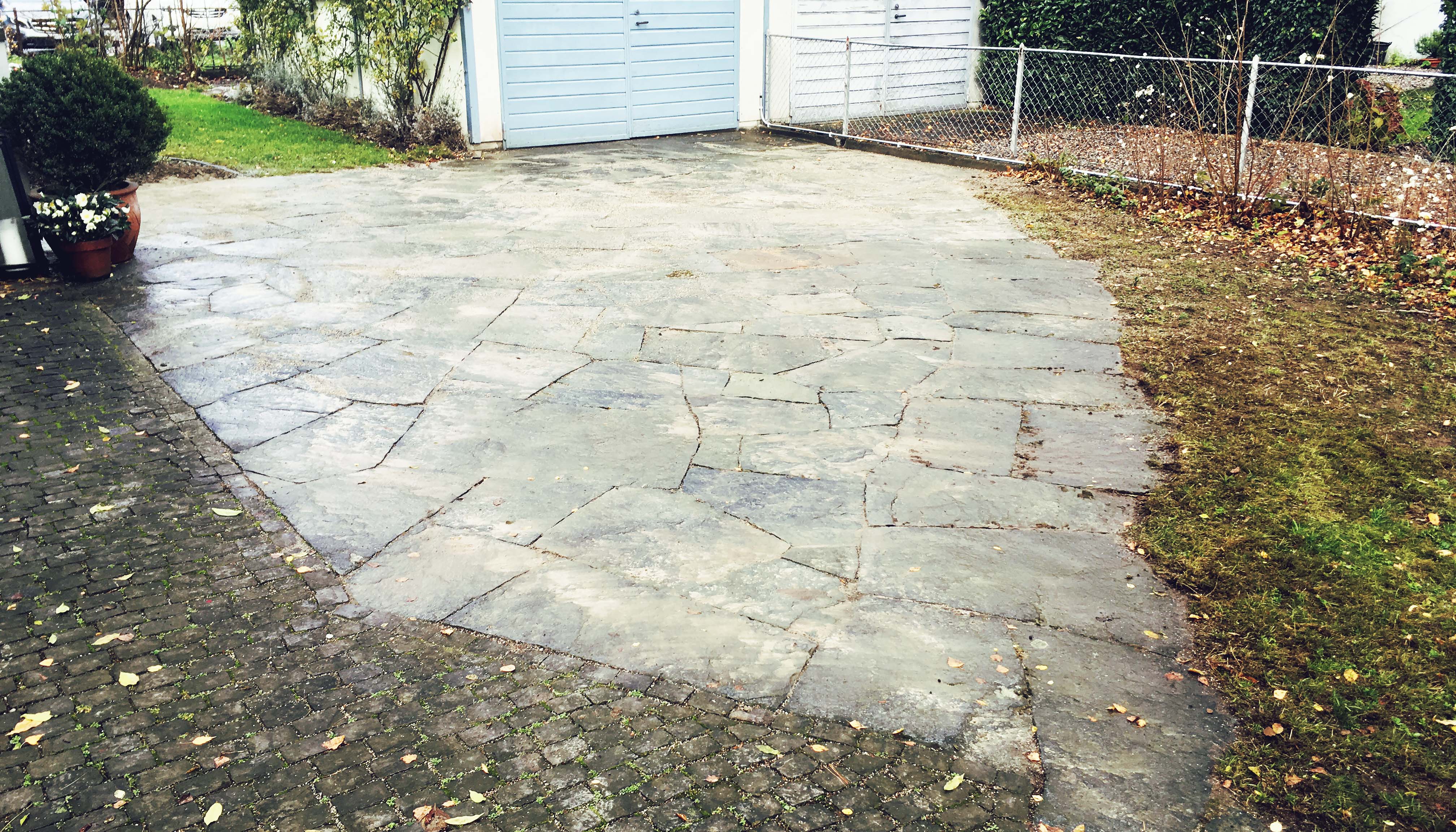 Zufahrt aus Maggie Gneis mit eingeschwemmten Sandfugen