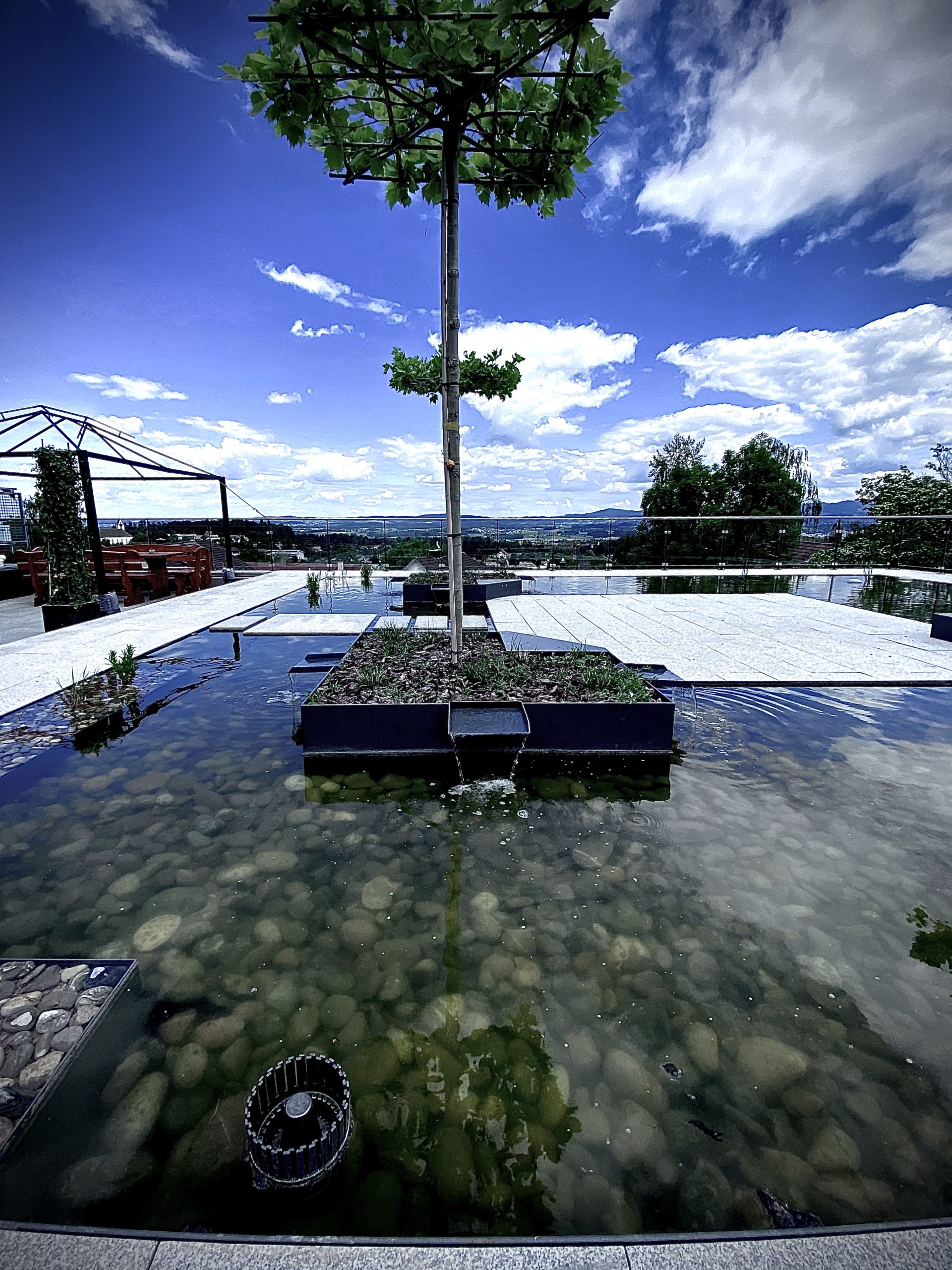 Spezialteichbau auf Vordach mit Aussicht in die Ferne