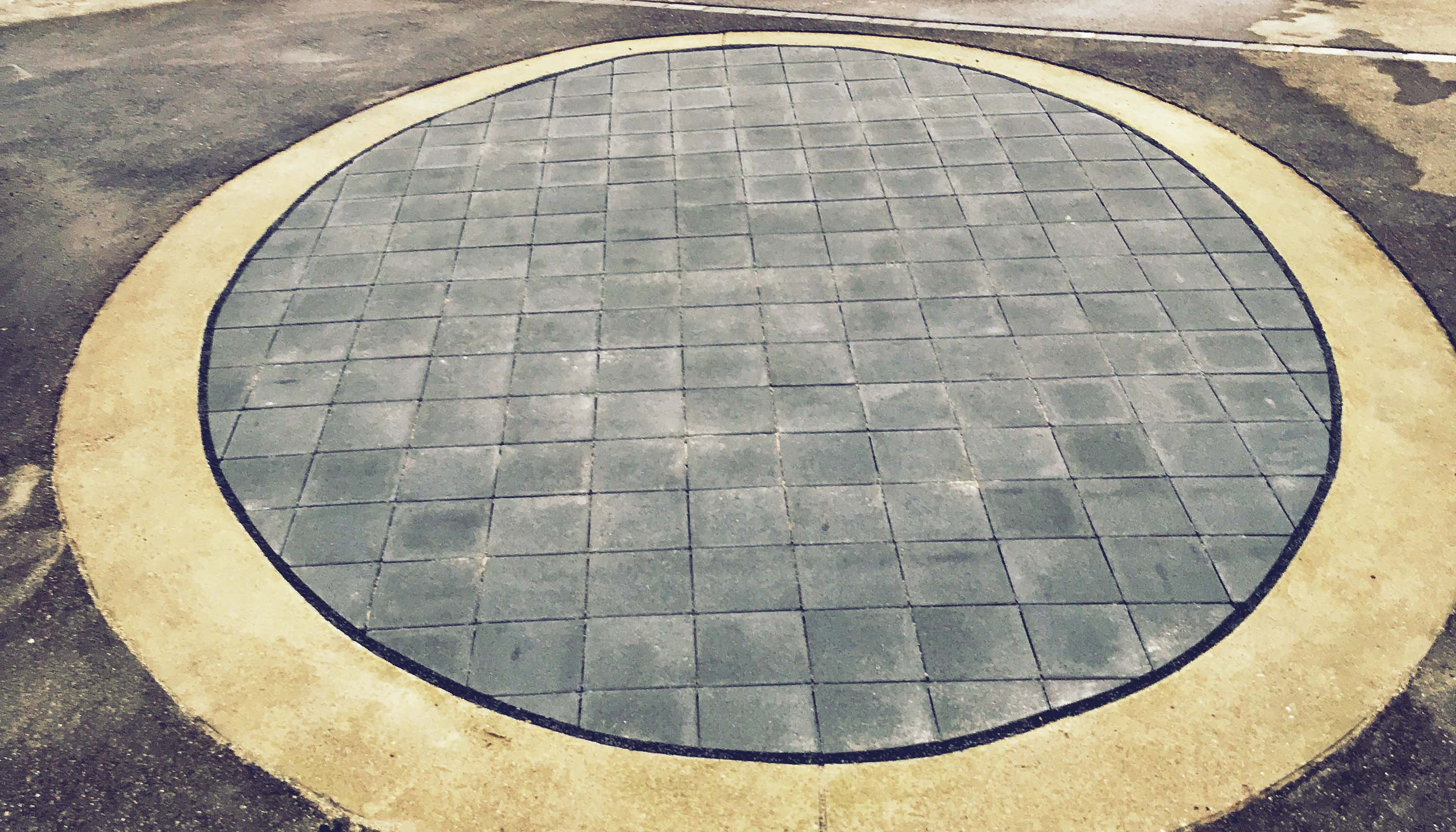Betonsteinbelag mit rund geschnittenen Kanten, Kurvenschnitt