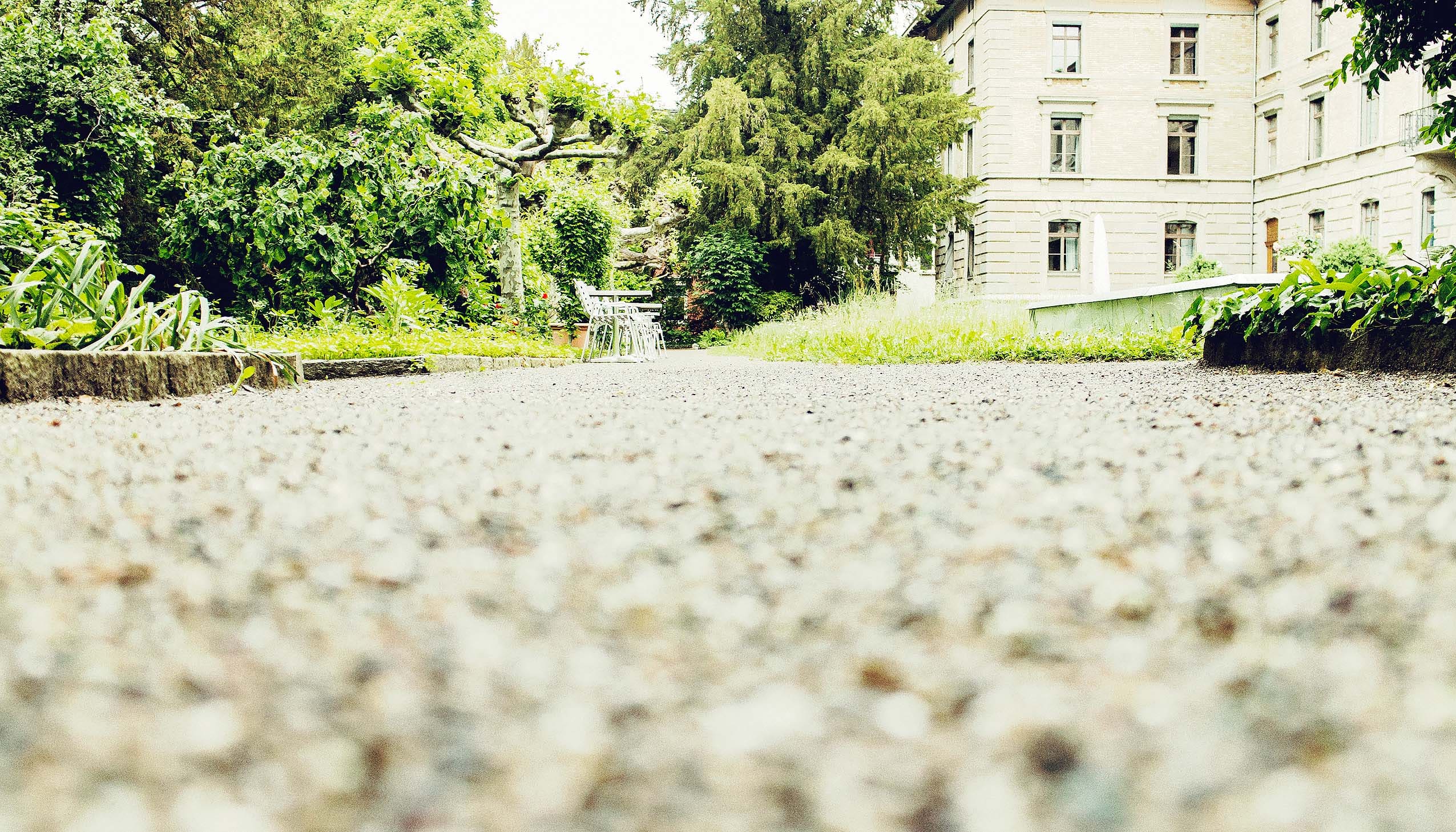 Kiesweg, Wassergebunden mit Sanddeckschicht im Altersheim